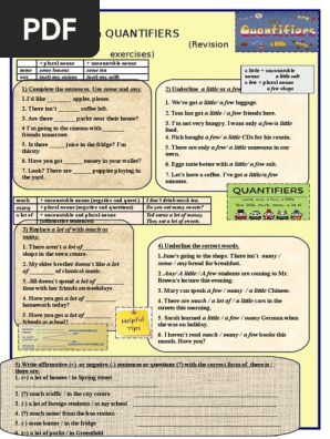 Exercises Quantifiers With Countable And Uncountable Nouns Pdf Exercise Poster from www.eslprintables.com Quantifiers in english grammar exercises. Check spelling or type a new query. Maybe you would like to learn more about one of these? We did not find results for: